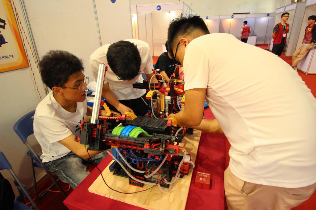 比赛现场展示了220多组来自不同高校的机械设计作品,“双人运动一体机”、“便携式可折叠老年代步车”、“移动智能药箱”、“自动熬药机”、“自动穿衣架”……不同的设计创意与理念交相辉映,让本次比赛异常精彩。在这些作品中,“仰躺式自动洗头机”、“健体解乏多功能孝心椅”等来自浙江理工大学的创意作品获得了专家的广泛认可,成为展示现场一道道亮丽的风景线。