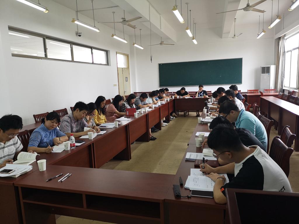 在15-401会议室召开学院“不忘初心、牢记使命”主题教育动员部署会、“讲初心、担使命”学习思享会第一期暨党委理论学习中心组专题学习研讨会。学院党委书记潘海鹏、院长陈本永,党委副书记苏丽辉、副院长俞高红、胡明、鲁玉军,党委委员吴震宇以及学院党委理论学习中心组成员参加会议。会议由苏丽辉主持。