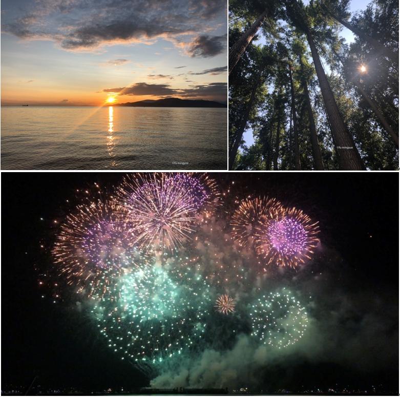 除此之外,同学们还利用周末的时间参与到温哥华当地人周末的休闲娱乐活动中,如一年一度的烟花大会,规模宏大,亮丽多彩,让人十分难忘。课后闲暇时可以傍晚来到学校旁边的海滩享受日落,学校内以及学校周边的自然景观极好,三面环海,站在学校内较高的建筑物里可以环视周围的海岛,眺望远处的海岸线。