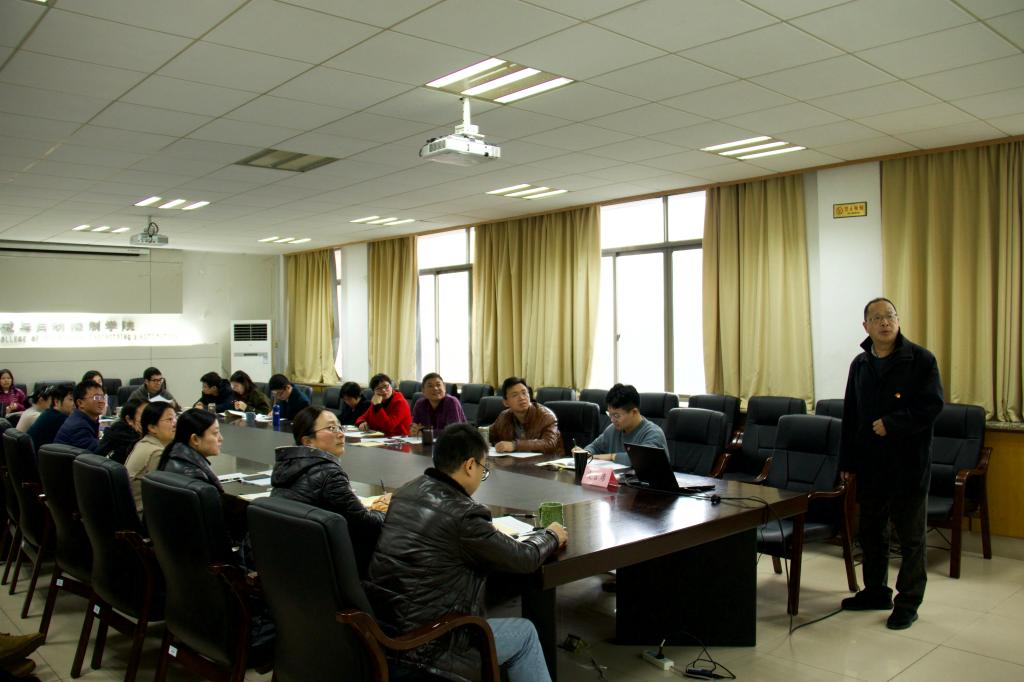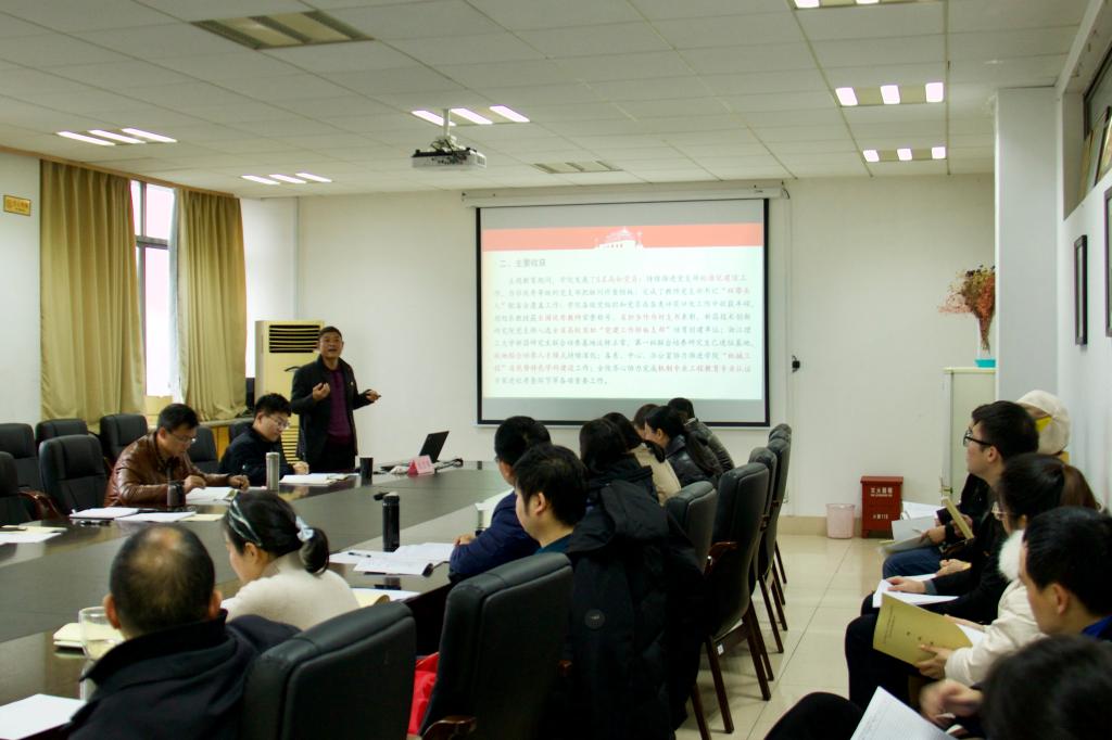 “不忘初心、牢记使命”主题教育总结会、2019年度党支部书记现场述职会暨党委理论学习中心组会在学院322会议室召开。学院党委书记潘海鹏,副院长俞高红、党委副书记王吴芳,以及各系(中心)、办公室负责人、师生党支部书记参加会议。会议由王吴芳主持。