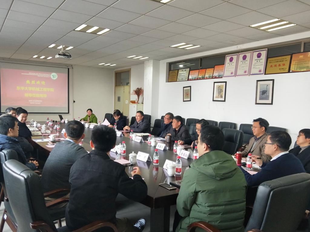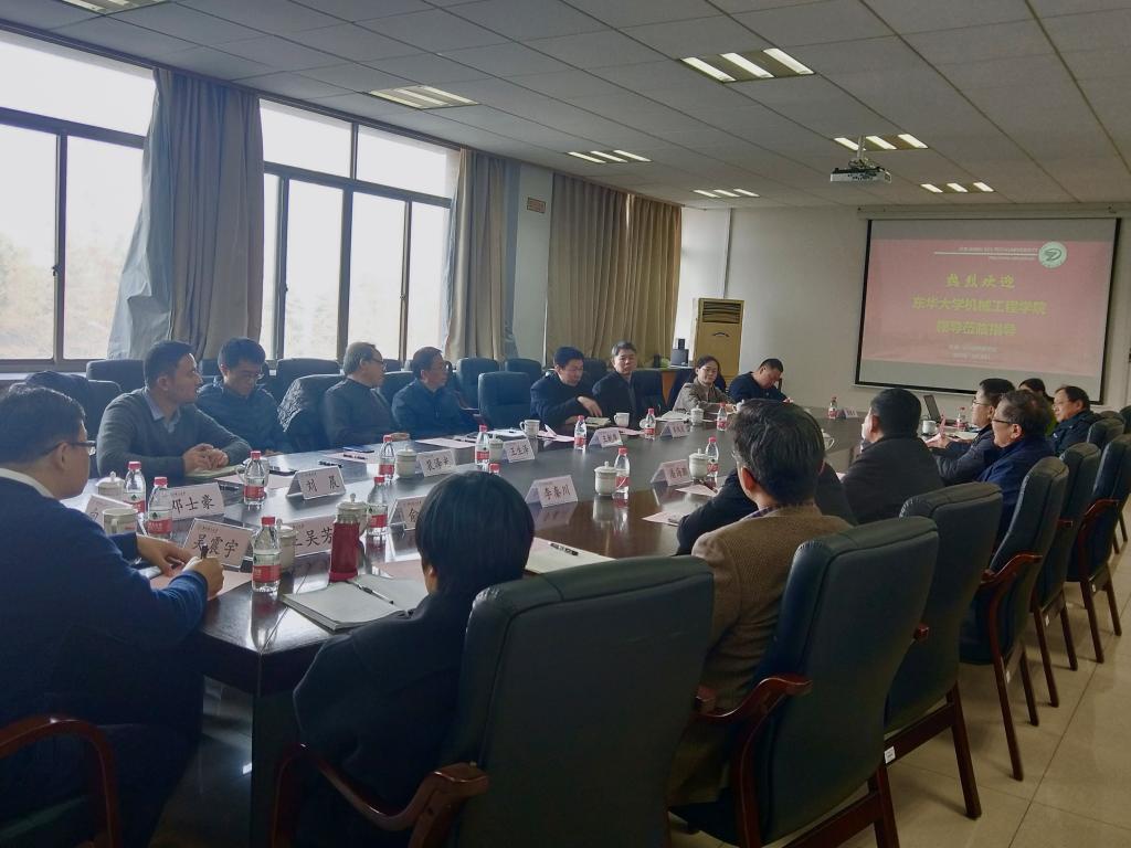 12月28日下午,东华大学博彩网站推荐 党委书记王新厚一行来博彩网站推荐 调研交流。调研座谈会议在15-322会议室召开,副校长陈文华,学院党委书记潘海鹏、院长陈本永,副院长俞高红、胡明、党委副书记王吴芳,党委委员吴震宇、学院教授代表李秦川、胡旭东等出席参加会议。