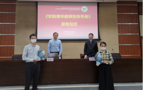 苏志俭介绍了学院党委开展青年教师队伍系列培训的目的和整体计划,与李秦川共同发布学院《青年教师生存手册》,并向青年教师代表授手册。