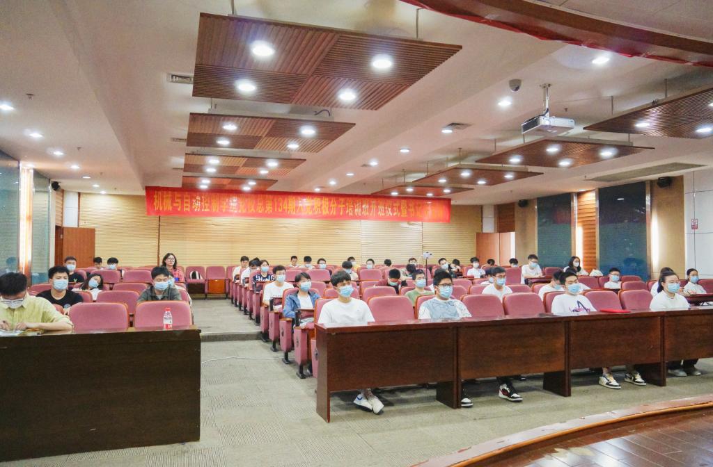 于5月11日下午举办第134期入党积极分子培训班开班仪式暨书记讲党课活动。学院党委书记苏志俭出席开班仪式,学院组织员高君、全体入党积极分子参加活动。开班仪式由学院党委副书记陆秋萍主持。