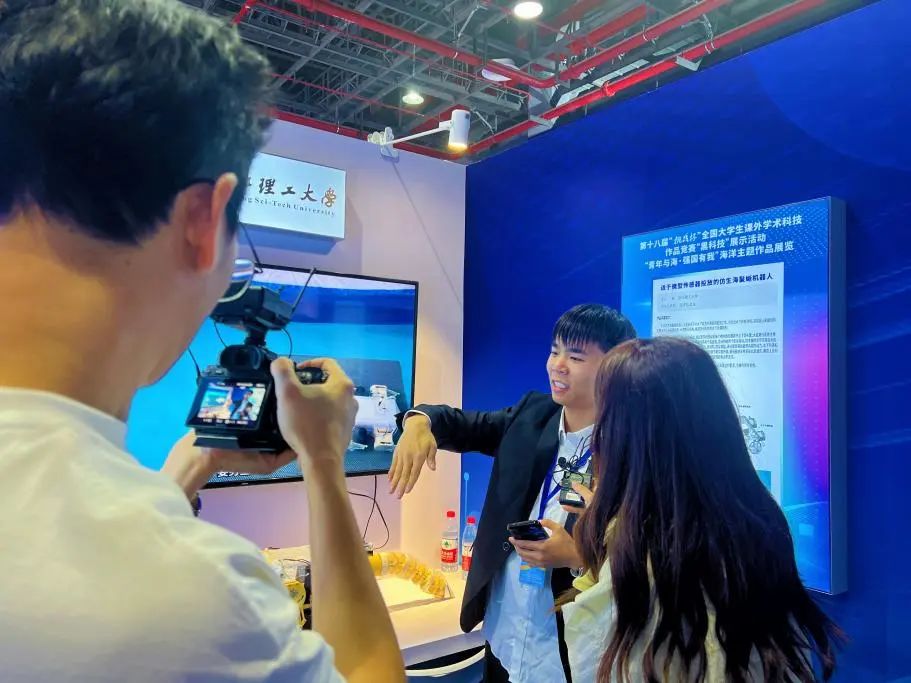 “挑战杯”黑科技专项国赛“恒星级”获奖作品《适于微型传感器投放的仿生海鬣蜥机器人》受邀参加第十八届“挑战杯”全国大学生课外学术科技作品竞赛“黑科技”展示活动“青年与海·强国有我”——海洋主题作品展览。