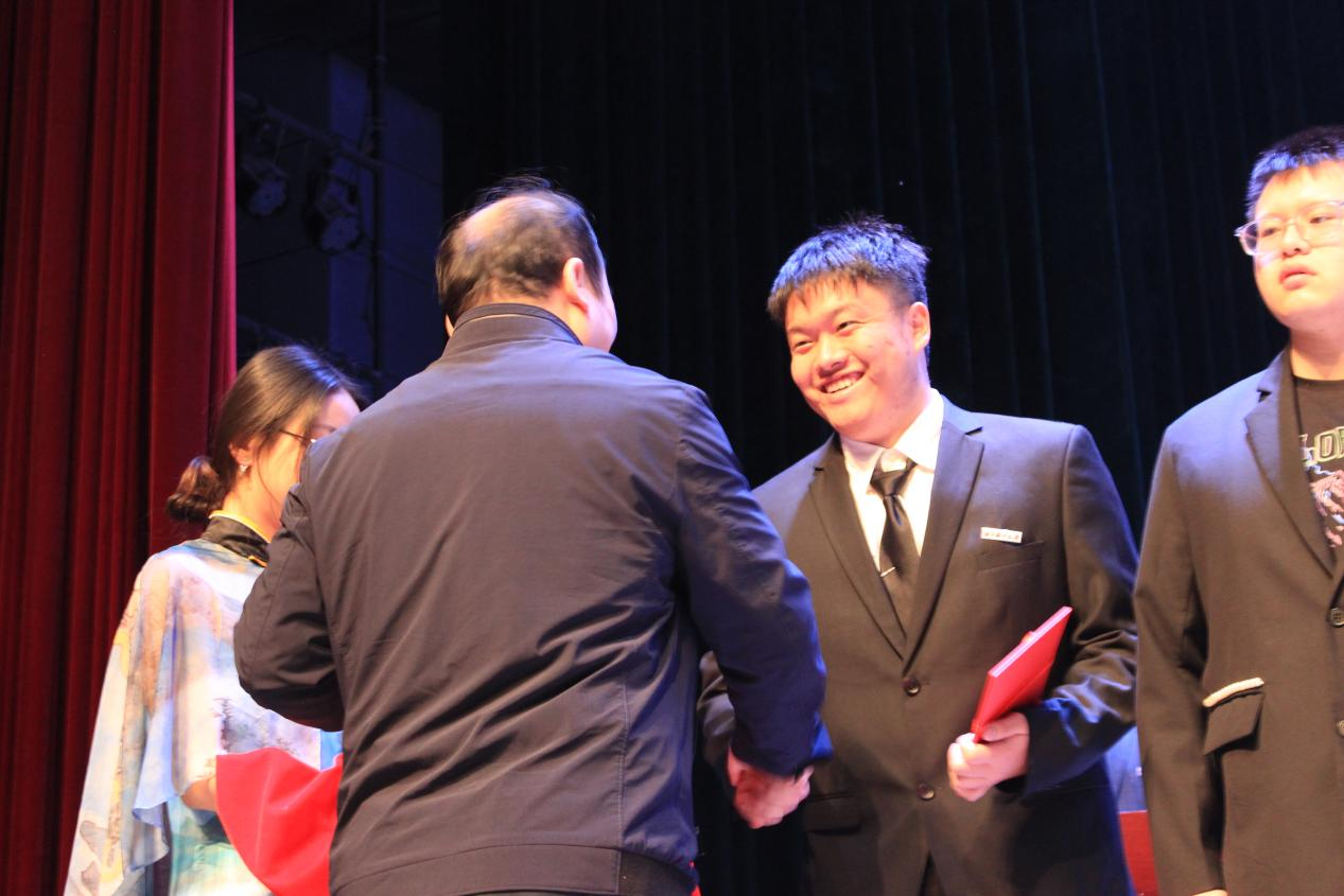 表彰环节,李秦川为2022年度浙江理工大学校长特别奖获得者和十佳研究生获得者朱赢鹏、陈露、陶俊宇颁奖,学院领导和各系主任先后对国家奖学金、纺织之光奖学金、优秀学科竞赛团队、优良学风班、优良学风示范团队、优良学风寝室获得者代表进行表彰。李秦川为2022年浙江理工大学十佳班主任程晓、十佳辅导员唐艺林,校优秀班主任陈刚、王丙旭、高兴文、柴馨雪、王政道颁奖以表彰他们昂扬的精神风貌和立德树人的扎实行动。